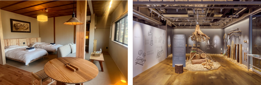 世界最大規模の「無印良品イオンモール橿原」には奈良県産材、吉野材を内外装に採用。吉野町には地元木工作家とコラボして仕上げた地域共生型宿泊施設「MUJI room SAKAMOTOYA」が誕生。旗艦店では「山のダイゴミ展」を企画し、山から出るもったいない資源を活かす活動も応援。最新では「木の家」の新仕様も発表。森林・木材×地域性を活かした多くのライフスタイル提案がされました。