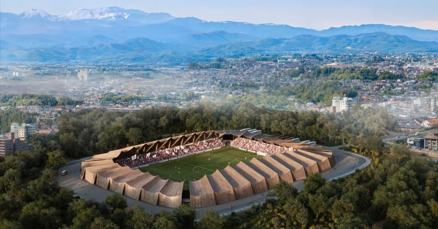 VUILD㈱が作成した木造スタジアム構想。 「式年遷宮」から着想を得て、資源循環・地域参加・技術伝承という「モノ・コト・ヒト」の3つの循環が実現する仕組みを考案。復興の象徴として建設され、世界に誇れる「リジェネラティブ(再生型)」なスタジアムの実現に向けた動き出すか!?
