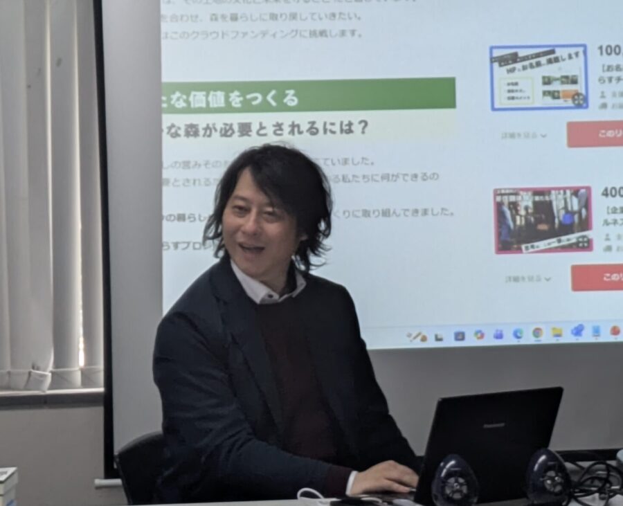 わかりやすい基本から、国や企業がどう考えているのか、森林ビジネスとの関わりや、全国での取り組みなど、親しみやすく軽快なトークで楽しく解説してくださいました。